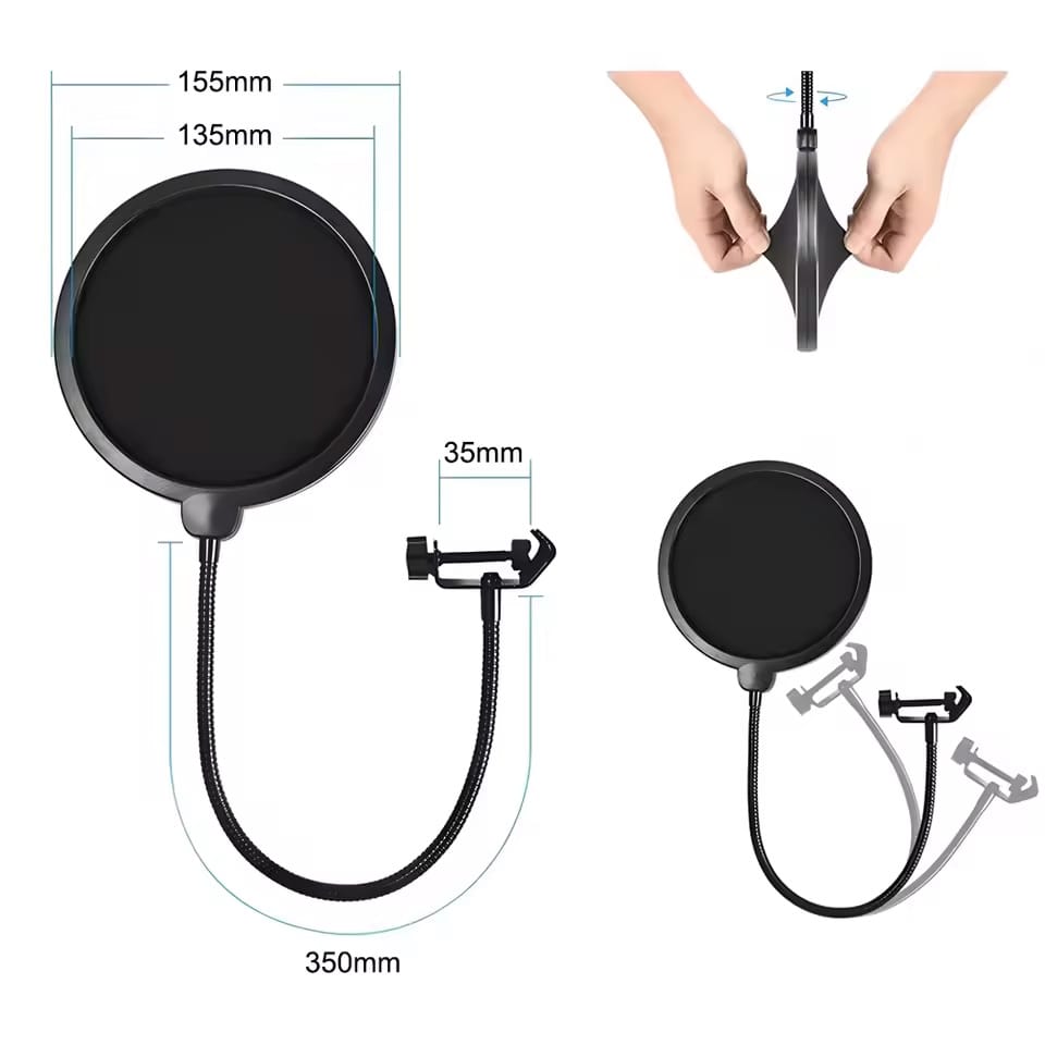 Dvouúrovňový pop filtr je nepostradatelný v profesionálních nahrávacích studiích i u tvůrců podcastů a hlasového obsahu. Díky němu zachytíte zvuk bez rušivých „ploských“ souhlásek (P, B) a minimalizujete okolní šum, vítr i zvuky nádechů a výdechů, čímž získáte čistý a vyrovnaný audiozáznam. Konstrukce z kvalitního ABS materiálu obsahuje dvě vrstvy jemného síta, která odfiltruje nežádoucí proudy vzduchu. Pop filtr se snadno připevní k mikrofonnímu stojanu nebo k okraji stolu pomocí závitové svorky a díky ohebnému husímu krku lze přesně nastavit úhel i polohu vůči mikrofonu. Výsledkem je vždy profesionálně znějící hlasový záznam.