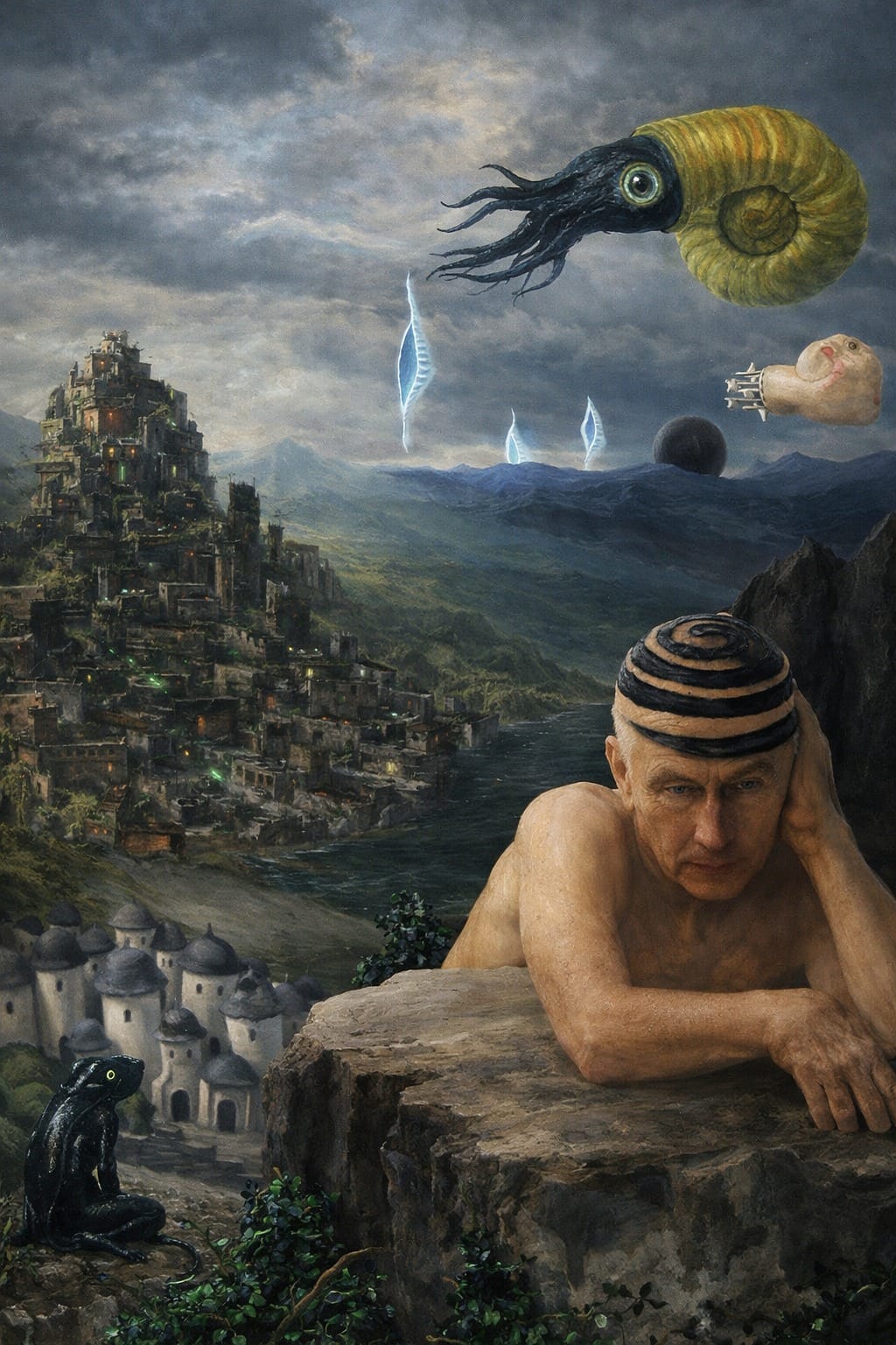 Dílo zkoumá hranici mezi autorstvím a syntézou, mezi původní lidskou fantazií a její transformací v kolektivní digitální mysli. Nejde o ilustraci příběhů, ale o jejich rezonanci: ozvěny emocí, symbolů a archetypů, které se v AI prostoru mění v nový jazyk obrazu.