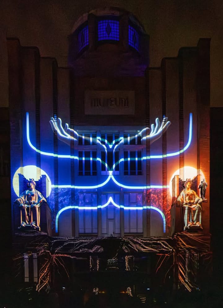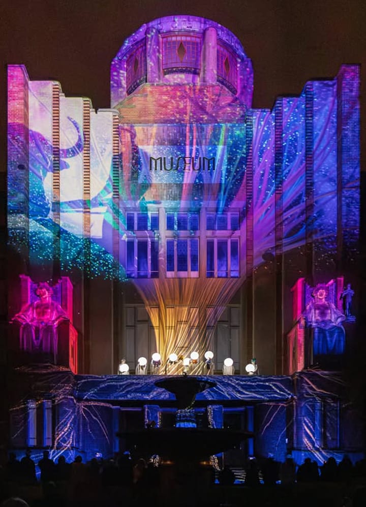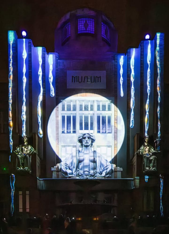 Umělecký videomapping, kombinuje klasickou projekci s živou performance devíti tanečnic během slavnostního večera. Každý zásah performera ovlivňuje dění projekce a stává se její nedílnou součástí. Současně audiovizuální dílo vypráví konkrétní příběh, který je propojen s architekturou budovy, respektuje její rysy a symboliku.